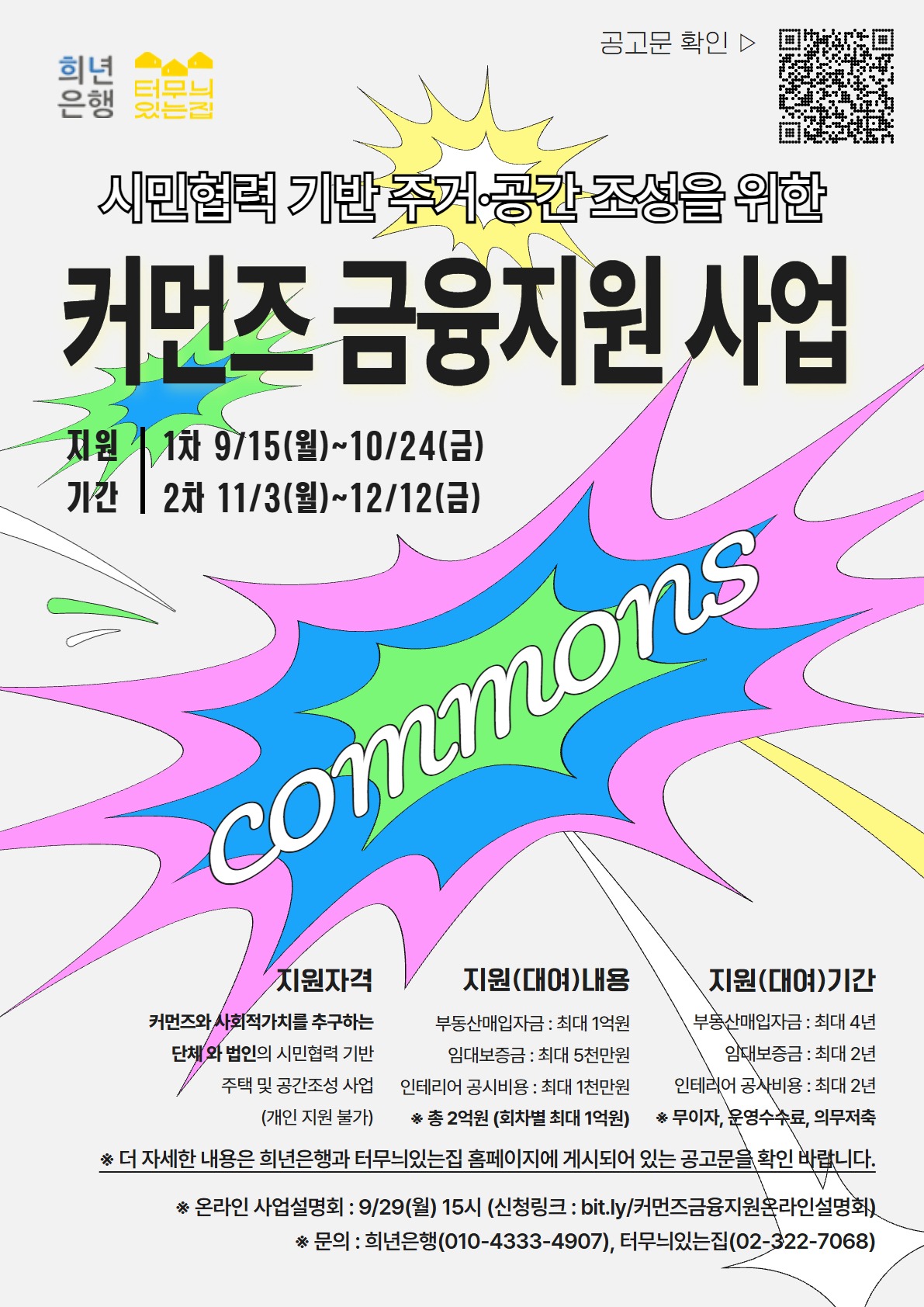 📌 사 업 명 : 2025 시민협력 기반 주거·공간 조성을 위한 「커먼즈 금융지원 사업」